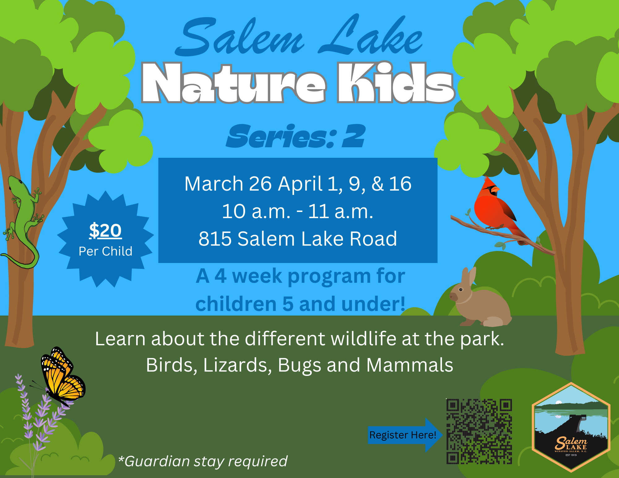 Play games, do crafts and meet live animals at Salem Lake! Series 2 is designed for kids that have already participated in the original Nature Kids.