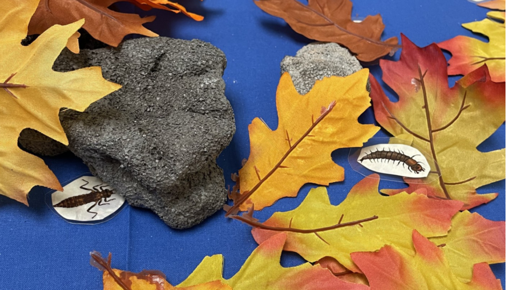 Come have some fun playing in our model of a creek, complete with leaf packs, rocks, snails and dragonflies! Scared of bugs? Don’t worry, we’re practicing with fake ones to learn which insects are most sensitive to pollution in the water.